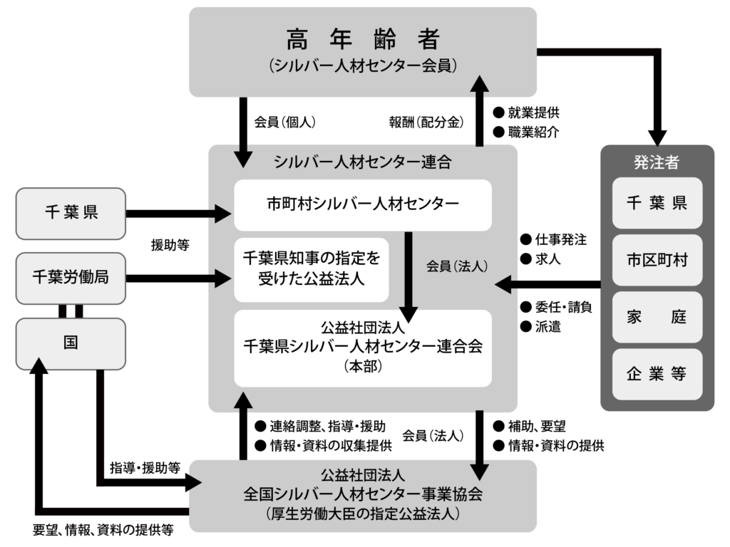 千葉県シルバー人材センター連合会は、千葉県知事の指定を受けた公益法人で、「高年齢者等の雇用の安定等に関する法律」に基づき活動をしています。